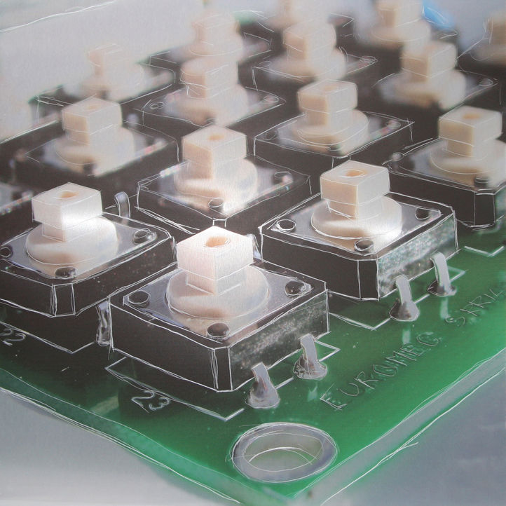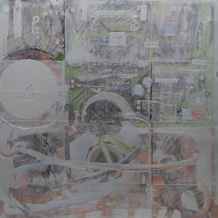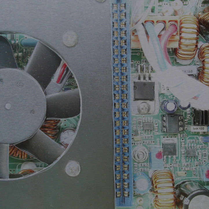 La sensazione che si avverte osservando le opere non si traduce in uno stridente contrasto ma c’è un’ implicita armonia, quasi un filo logico che l’artista adopera come un legante fra le due serie, osserviamo che all’interno del ciclo dedicato a Marylin vengono inseriti piccoli dettagli, i circuiti che fanno le veci di accessori femminili, o inseriti all’interno di un obiettivo fotografico.